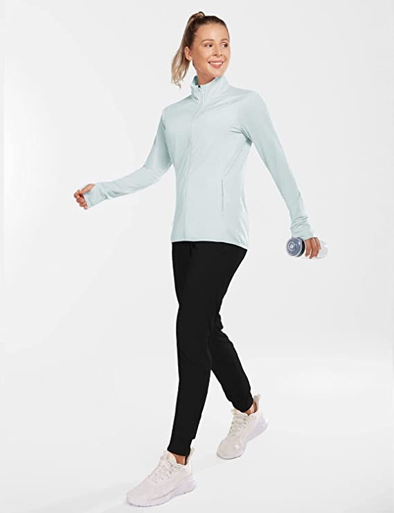 BALEAF Women's Long Sleeve Shirts UPF 50+ Sun Protection Full Zip Athletic Jackets Running Lightweight Zipper Pockets