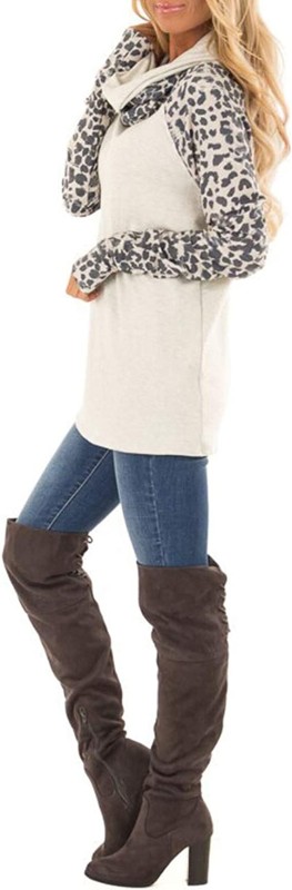• Unique leopard print long sleeve patchwork,with the stylish cowl neck,contrast color block,and other fashion elements,reflects the master design concept from the whole to details.