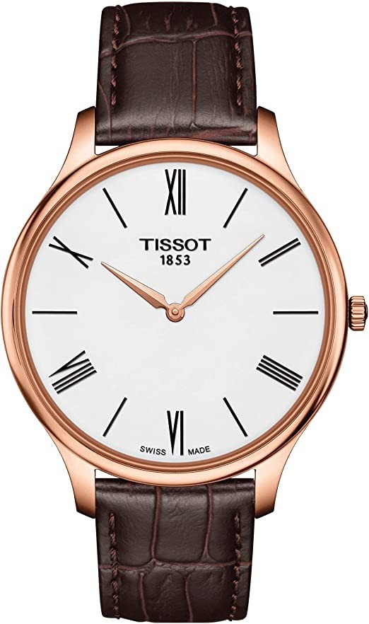 A touch of vintage and some vintage details, all housed in a 1950s curved enclosure, combine to create the Tissot heritage. The new model has a very thin casing, less than 5.5 mm, consisting of 2 hands and a Roman index.